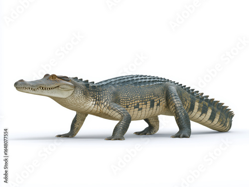 crocodile, reptile, three-dimensional, illustration, animal, wildlife, nature, predator, scale, detailed, powerful, body, aquatic, environment, habitat, fierce, jaw, eye, texture, pose, realism, anatomy, species, fauna, ecosystem, behaviour, strength, design, creative, art, graphic, visual, representation, character, unique, dynamic, posture, background, white, clean, high-coloured, striking, depiction, artistry