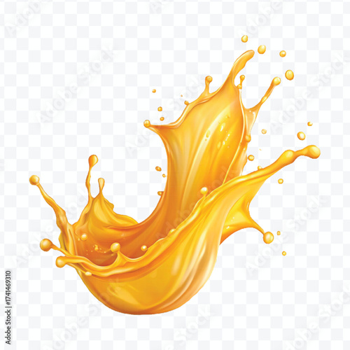 realistic 3d mango or orange juice splash in mid air cut out and curve style isolated on transparent background