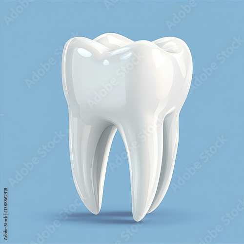 Realistic 3D rendering of a healthy tooth with smooth surface on a blue background