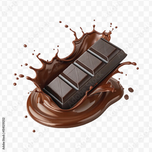 realistic 3d smooth liquid chocolate splash with chocolate bar in different style isolated on transparent background