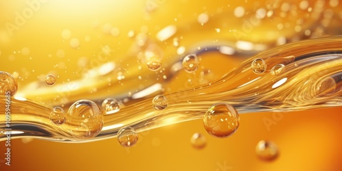 Realistic Animation of Fluid Dynamics with Glimmering Bubbles in a Warm Golden Hue Captured in High Detail for Stock Photography Purposes