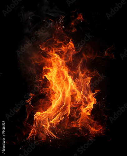 Realistic Burning Flame with Hot Orange and Yellow Fire on Transparent Background, Intense Heat, Energy, and Light for Abstract Design and Creative Art