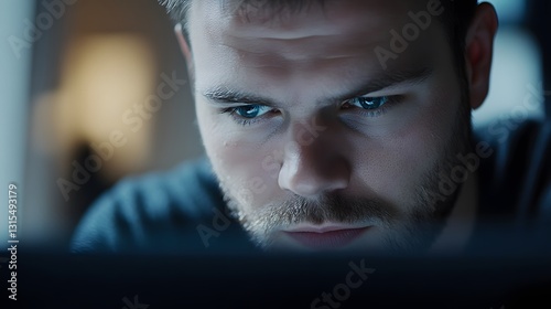 realistic, closeup, man, face, concentration, working, desk, focused, computer, screen, thinking, serious, professional, office, business, technology, determination, productivity, intense, thoughtful, workplace, sharpened, study, analytical, corporate, modern, digital, creativity, deep thought, engaged, workspace, career, intelligent, decision-making, strategy, motivated, laptop, efficiency, high technology, workflow, innovation, person, man, people, looking, photogenic, expression