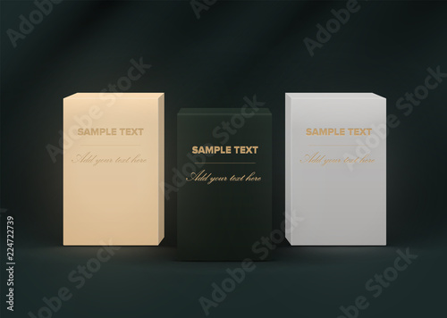 Realistic high-detailed product boxes on dark green background, vector illustration