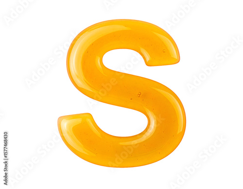 realistic honey shaped letter s on isolated background for organic product logo and sweet branding design
