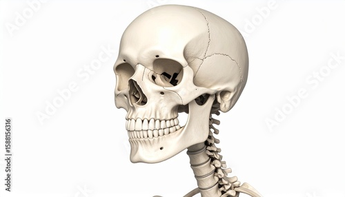 skull, anatomy, human, education, medicals, skeleton, bone, structure, biology, white background, illustration, health care, science, research, dental, skull, jawbone, cervical, therapeutic, visualisation, teaching, museum, study, bod, artistic, design, detail, film, art, rendering, lighting, realistic, character, representation, graphic, nature, information