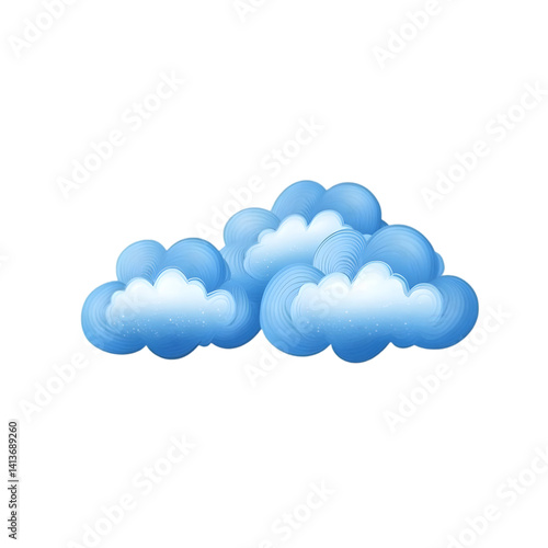 Realistic Illustration of Blue and White Fluffy Clouds Isolated on Transparent Background