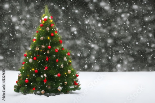 fir, christmas, christmas tree, generative, ai, illustration, new year, outside, december, christmas, decorated, beautiful, snow, celebration, holiday, festive, eve, ornament, tree, colours, seasonal, design, scenic, gift, object, merry, nobody, evergreen, pine, nature, green, winter