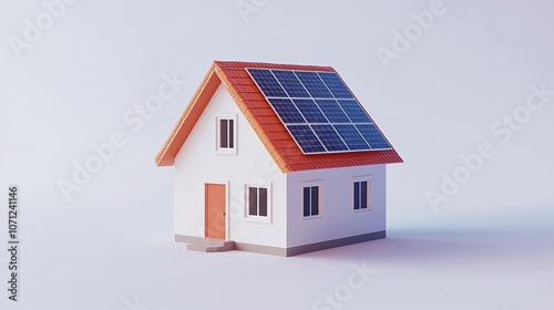 Realistic image of a smart home featuring a solar panel installed on the roof. The modern design of the house showcases energy-efficient technology, highlighting the integration of renewable energy