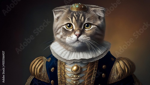 Realistic lifelike Scottish Fold cat kitten kitty in renaissance regal medieval noble royal