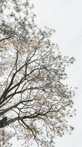 realistic, photograph, leafy, tree, low, angle, view, detailed, branch, leaf, contrasting, white, background, nature, greenery, foliage, botanical, arbour, canopy, texture, serene, natural, environment, eco, lush, verdant, bright, clear, flora, forest, park, garden, scenery, timberland, overhead, detail, sharp, crisp, isolated, pure, airy, expansive, perspective, height, leaf, tree branch, arboreal, vertical