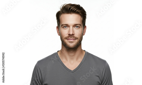 Realistic Man Portrait with Detailed Facial Features Isolated on White Background for Professional Photography