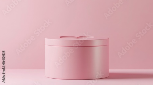 Realistic pink 3D cylindrical empty podium with heart shaped background for valentine's day banner. Valentine's day minimal scene for products showcase, Promotional display.