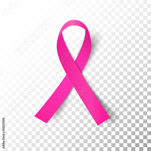 Realistic pink ribbon with shadow isolated over transparent background. Symbol of world breast cancer awareness month in october. Vector illustration