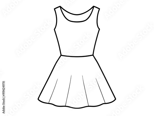 Realistic Skater Dress on White Background Vector Illustration, Cartoons, Clipart, Line Art, Realistic skater dress vector on white background, perfect for fashion design projects.