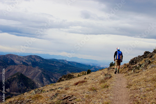 hiker, walking, mountain, cloud, sky, backview, backpack, lifestyle, nature, vacation, casual clothes, fun, rock formation, happiness, remote, get-away, hiking, adventure, enjoyment, exploration, destination, calmness, hobby, geology, environment, us, montana, cap, avocation, full-length, day, outdoors, one person, young adult, young men, male
