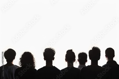 Rear view of several people's silhouettes outlined against a white background