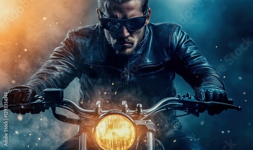 Rebellious Street Biker with Leather Gear and Intense Energy