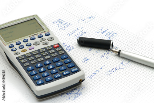 calculation, count, computer, fountain pen, pin, calculation, bench, business, business, finance, business, compute, profit, profit, buy, money, earn, spend, plan, wheel, control, pay, pupil, leaf, paper, isolated, background, fountain pen, calculation