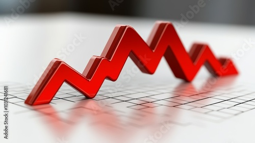 Red 3D Arrow Graph Downward Trend Decline Chart