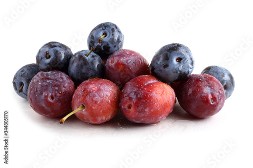 blue, red, isolated, plum, dripped, shadow, water, wet, white, background