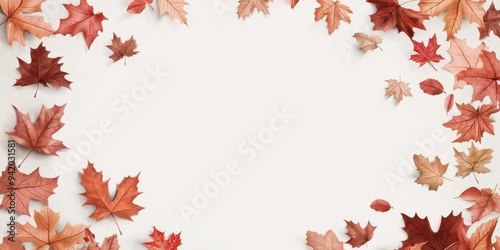 Red and brown leaves scattered on the ground, earthy autumn tones with text space, illustration
