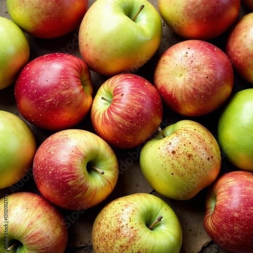 Red and green apples with sprinkled cinnamon on seamless background, organic, design