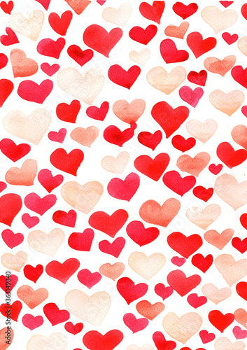 Red and pink heart watercolor hand painting background for decoration on Valentine's day and wedding events.