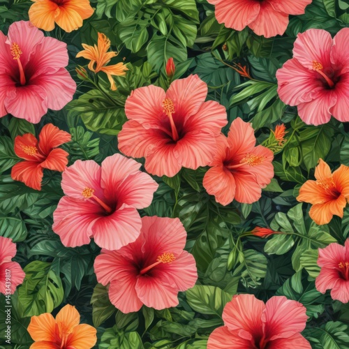flower, nature, hibiscus, floral, plant, pattern, flower, pink, beauty, flora, garden, summer, purple, vector, seamless, bloom, blossom, leaf, spring, red, tropical, design, colours, art