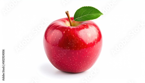 red apple with green leaf on white background