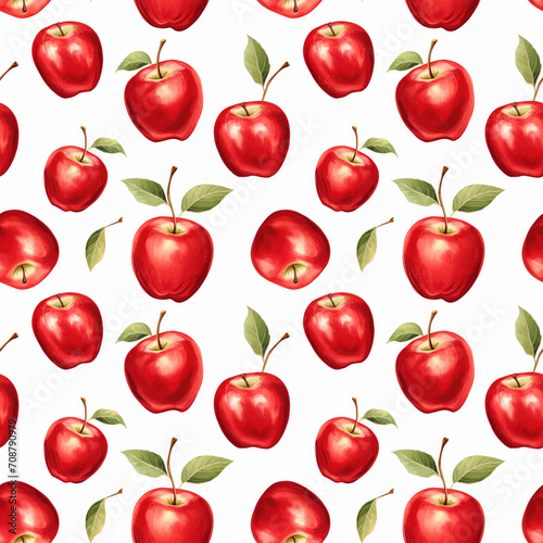 apple, red, pattern, background, seamless, garden, harvest, fruit, sweet, watercolor, seasonal
