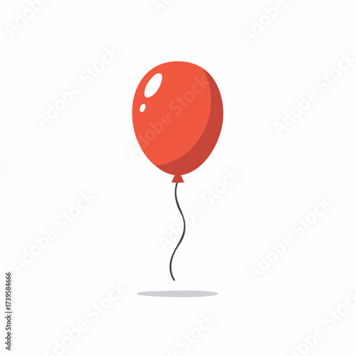 Red balloon illustration graphic isolated on white with a curved string and shadow.
