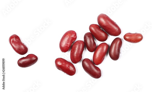 Red beans isolated on white background, top view