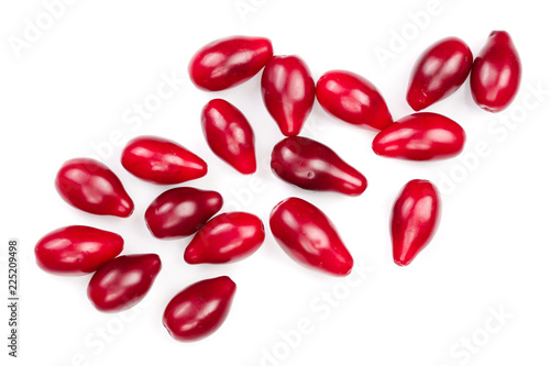 Red berries of cornel or dogwood isolated on white background. Top view. Flat lay