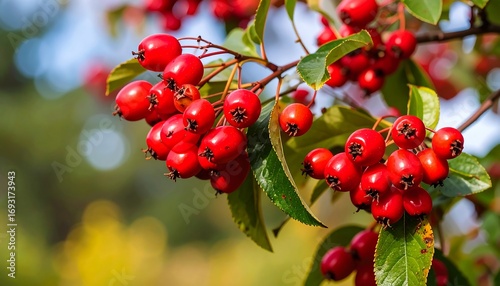 berry, red, tree branch, leaf, nature, autumn, bush, flocked, fruit, vibrant, close, garden, healthy, ripe, growing, fresh, detail, plant, outdoors