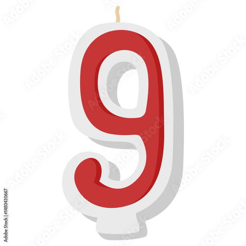 candle, birthday, number, 9, red, wax, flames, light, fire, party, celebration, decoration, numeric, symbol, festive, fun, cheerful, shape, design, object, figure, element, cartoon, cute, glossy, isolated, children, gift, surprise, decor, shiny, bright, icon, toy, up, graphic, foam, blow, air, white, special, anniversary, happy, event, plastic, illustration, art