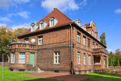 Red brick old building in Nikiszowiec historic mining district of Katowice, Poland