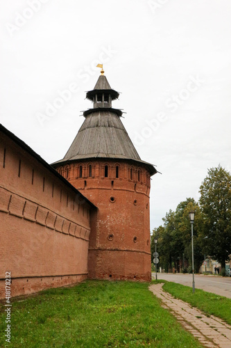 red brick wall and tower of Saviour Monastery of St. Euthymius in Suzdal, Russia