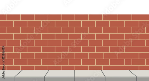Red brick wall with sidewalk pavement vector illustration in urban construction background