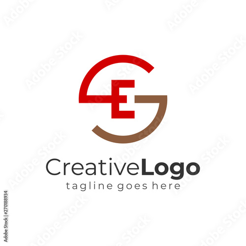 Red Brown Abstract Circular Initial Letter G and S and E Business Logo Flat Vector Design