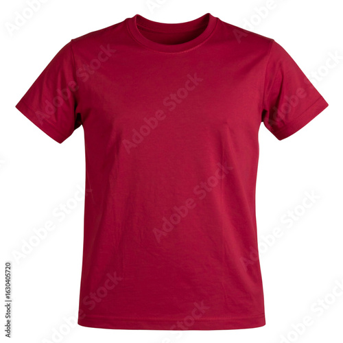 Red casual t-shirt, short sleeves, apparel for fashion and style on transparent background