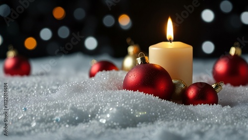 christmas, decoration, candle, holiday, ball, christmas, snow, celebration, winter, tree, bauble, season, ornament, flames, red, december, fire, new, light, candle, fir, tree branch, decor, card, bauble
