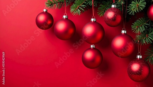 christmas, ornament, red, ball, fir, branch, hanging, decoration, festive, holiday, winter, decor, sphere, shiny, glistering, sparkly, ornate, closeup, background, image, design, pattern, simple, elegant, classic, sophisticated, stylish, texture, depth, composition, arrangement, geometric, minimalist, bright, vibrant, colours, studio, surface, warm, season
