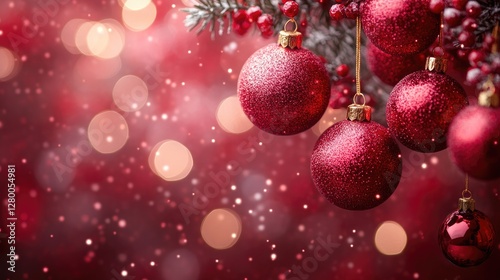 ornament, christmas, red, festive, holiday, decoration, winter, background, bokeh, snow, season, celebration, greeting, card, design, happy, new, year, gift, tree, tree branch, ball, shiny, glistering, texture, abstract, holiday, party, event, december, vintage, traditional, classic, elegant, luxury, bright, sparkly, merry, cheerful, wintery, greeting