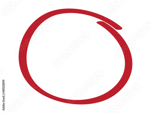 Red circle pen draw. Highlight hand drawn circle isolated on white background. Handwritten red circle. For marker pen, pencil, logo and text check. Vector illustration