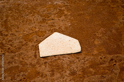 red clay baseball field and various views of the baseball home plate