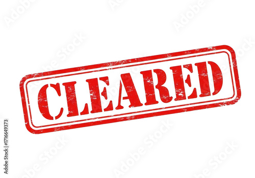 cleared, stamp, red, grunge, effect, approval, completion, finished, passed, confirmed, signed, off, document, official, rubber, text, graphic, word, art, bold, distressed, weathered, vintage, retro, authentic, finality, endorsement, authorisation, icon, symbol, design, element