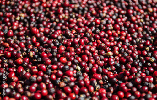 Red Coffee beans drying in the sun in the mountains of Boquete, Panama, Central America