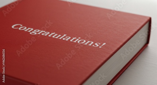 box, congratulation, text, greeting, celebration, red, white, giving, gift, cardboard box, message, announcement, achievement, event, closeup, texture, surface, paper, cardboard, square, minimalist, simple, geometric, indoor, table, occasion, positive, joyful, formal, clean, flat, angled, still life, studio, copy space, presentation, advertising, graphic design, product, decorative