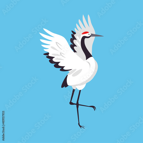 crane, red, crowned, long, leg, neck, bird, standing, widener, wing, blue, background, illustration, japanese, white, plumage, black, tail, nature, animal, flight, wildlife, large, gruiformes, pose, beak, creature, flying, asian, feather, ornithology, species, freedom, fauna, aves, avian, tall, toothless, migrating, wading, zoo, bill, rare, graceful, isolated, art, vector